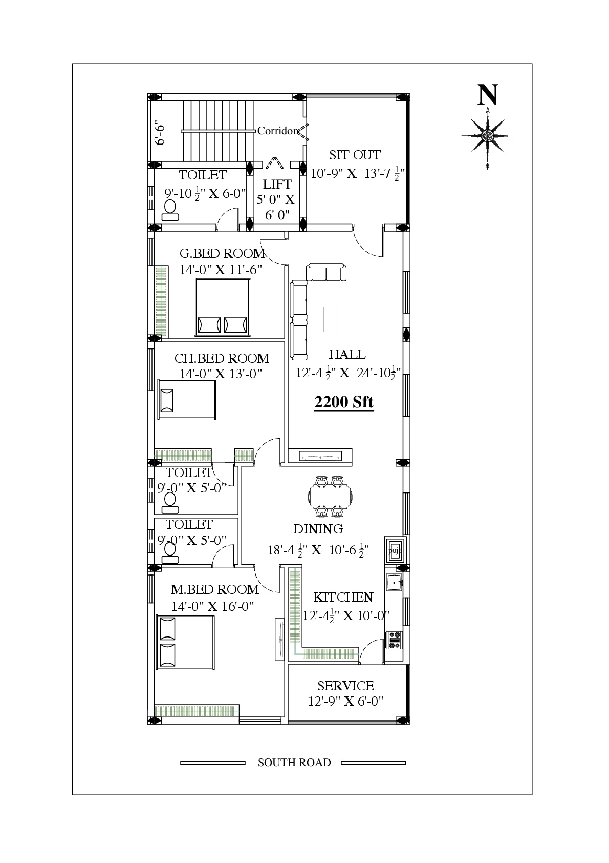 | WALLS | : All exterior walls 9” thick & inner walls 4 1\2” thick with clay brick-walls. |